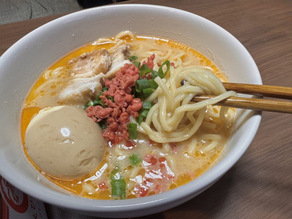 「北海道の味噌ラーメンといえば…」と思い、コーンも追加しました