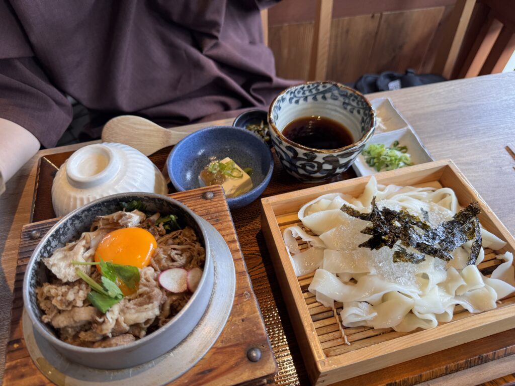 和牛焼すきと舞茸釜めし・冷ひもかわうどん定食(¥2,277)
