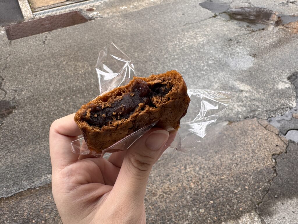 黒糖を使った薄皮は、ふわふわでもっちりしていて、